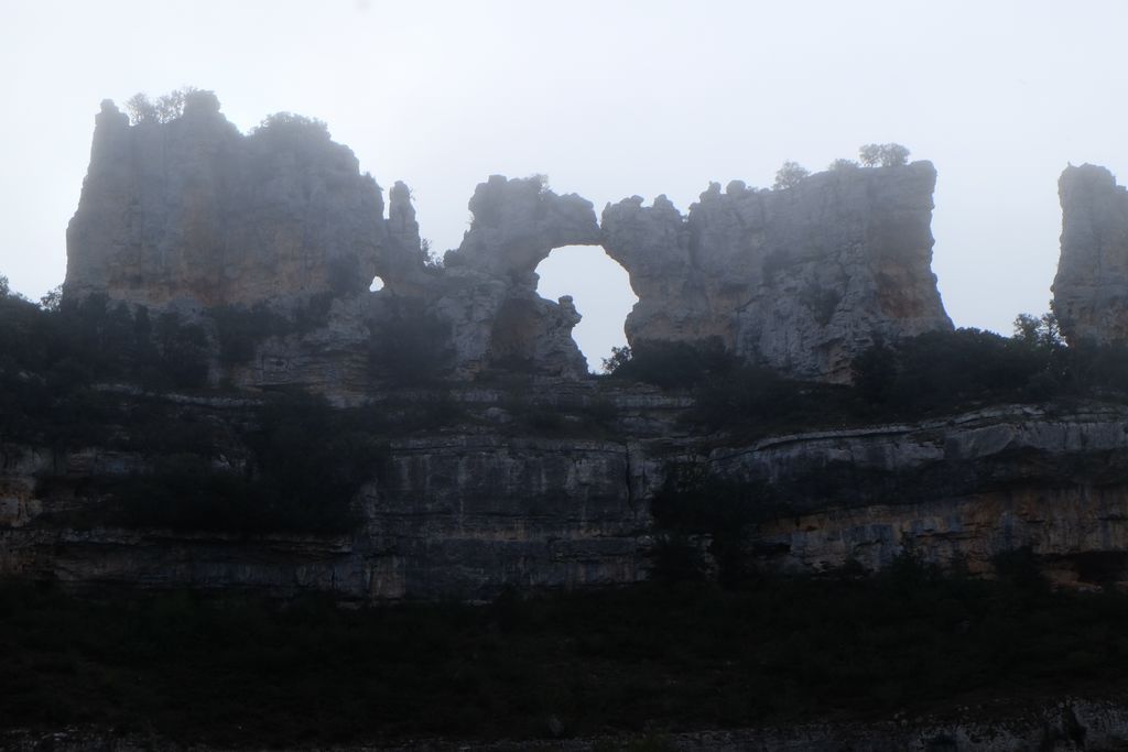 Nous reprenons la N623 en sens inverse en direction de Soncillo pour y voir une curiosité géographique dans le village de Puentedey. Ici la rivière Nela a creusé un pont naturel formant une arche de plus de 15 m de haut sur laquelle le village est perché. Malheureusement pour nous, un paysan a décidé de faire ses brulis à ce moment et le bourg et son arche sont envahis par une fumée blanche épaisse. Un petit tour à moto dans ses ruelles étroites et pavées et nous continuons dans cette vallée encaissée.