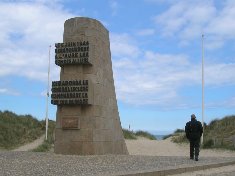 A hauteur des dunes de Varreville se trouve un monument à la mémoire des troupes du Général Leclerc. On peut y voir un char Leclerc et véhicules blindés de la 2ème DB, maintes fois repeints pour résister aux affres du temps et des embruns salés…C’est d’ici que par la borne zéro de la voie de la liberté de la 2ème DB conformément au serment de Koufra.
