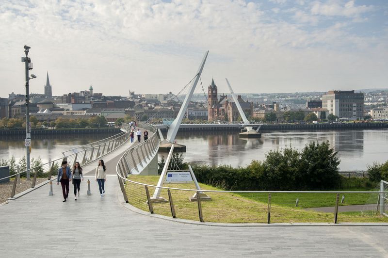 En 2011 un pont nommé le Peace Bridge fut construit. Ce pont relie les deux parties de la ville. On y a une très belle vue sur le Guildhall, l’hôtel de ville, et la ville.