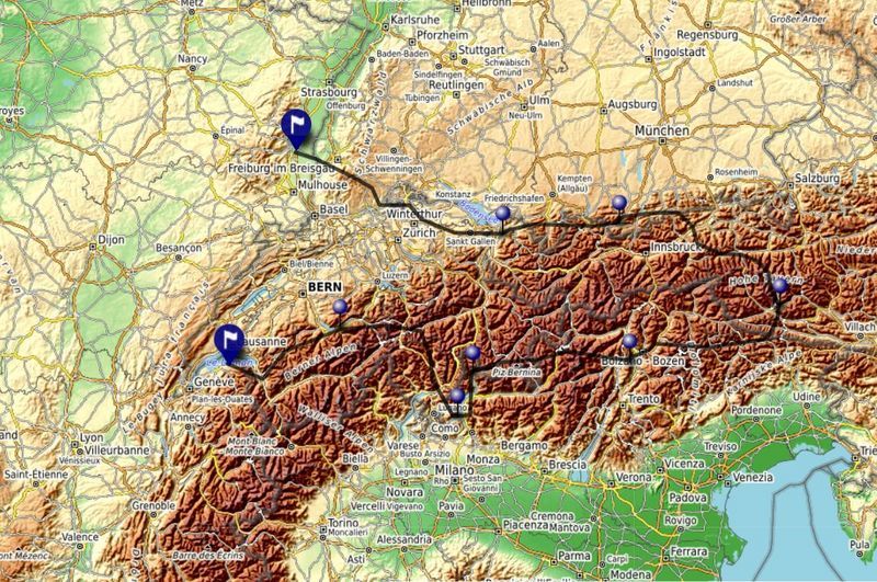 Après avoir longé les typiques vallées Suisses vers St Moritz vous attaquerez les interminables lacets du col du Stelvio, un des plus haut cols routiers des Alpes dont la vue au sommet est saisissante. Vous entrerez ensuite dans la région italienne du Sud Tyröl Haut-Adige et roulerez entre vignobles et vergers pour séjournerer au cœur du massif des Dolomites, au sommet d'un col panoramique.